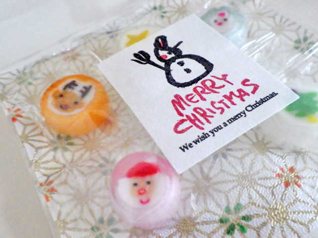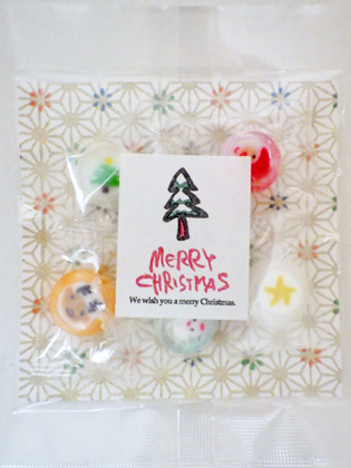 オシャレな和風パッケージにクリスマスを象徴する絵柄の飴ちゃんをセットに